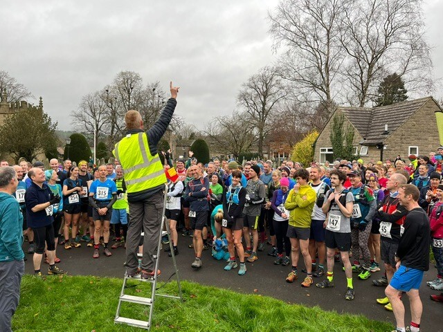 Following its very successful inauguration in 2019, when 287 runners completed the course, the race has led a more difficult path. The 2020 race was cancelled due to the virus that cancelled most of that year. The 2021 race went ahead, but only 113 of 350 entrants started as an icy blast (called Storm Arwen) covered the area in a thick blanket of snow. In comparison, this year’s race was positively tropical, with temperatures reaching 10˚C in the shade (although -10˚C with wind chill factor up on Baslow Edge reported one chilly marshal).