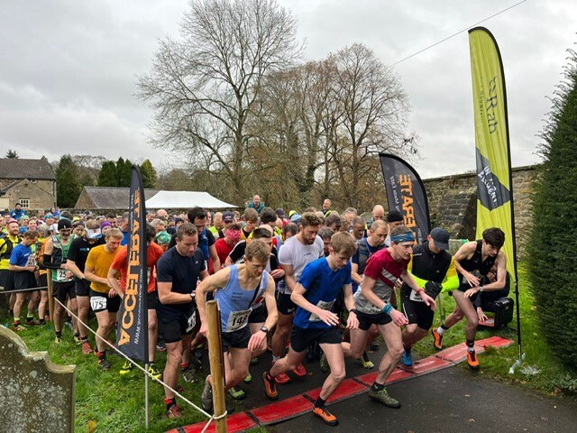 The overall winner was Andrew Heyes. At 47:13 his time beat the previous course record by over 3 minutes. To keep it in the family, his wife Lauren Heyes finished as first woman with a time of 55:29 (beating the female course record by 5 minutes). Christmas is looking good in the Heyes household this year as they both walked out with a Chatsworth Hamper and Rab vouchers to spend at Outside in Hathersage. Andrew and Lauren were running in memory of Andrew's sister, Jenny, who passed away in 2018. Her 3 children attend the village school, and the family are all very much a part of Baslow community life making this a particularly special win for the couple. This year we were very pleased to give prizes to all ages categories and local winners. Many thanks to all our sponsors (listed on our sponsors page). Local resident Michael Brown was particularly strong with a finishing time of 59:02!